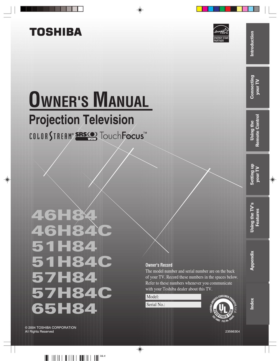 Toshiba 57h84 Service Manual Toshiba Projection Television 51h84 User Guide